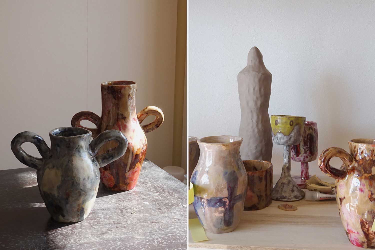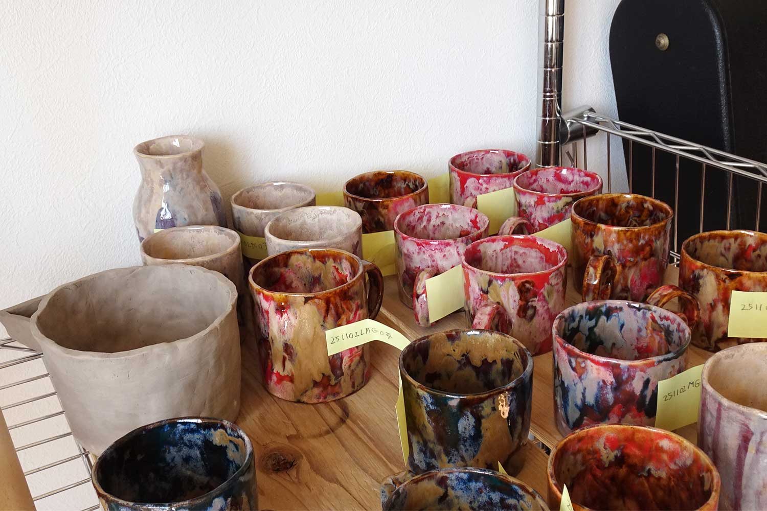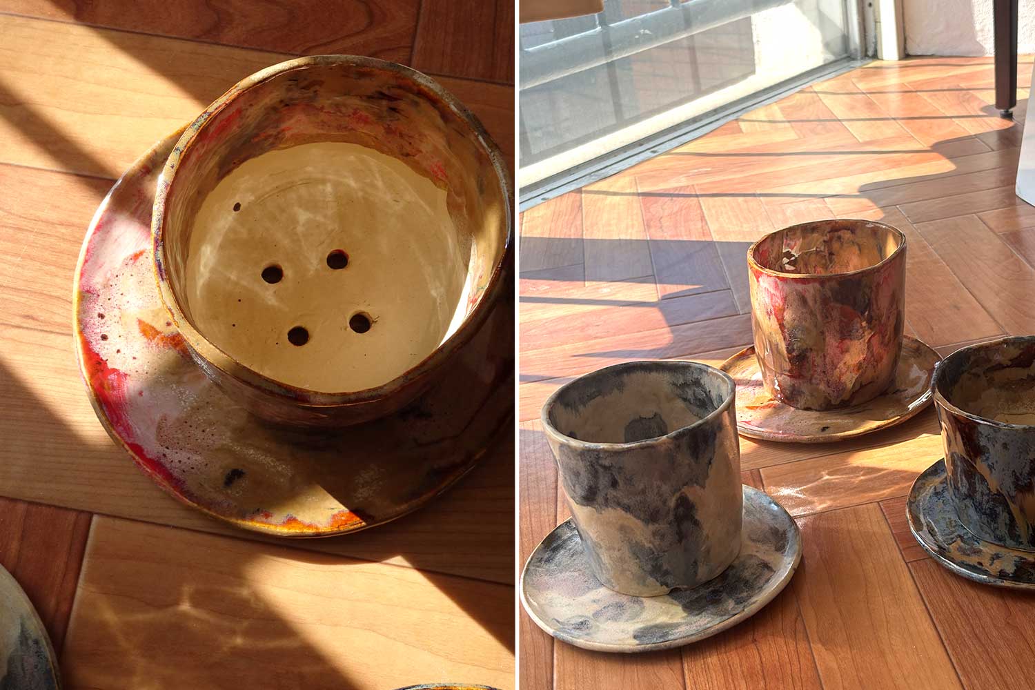 普段はマグカップなどの食器やフラワーベースなど、土から生成・釉薬調合・焼成までを全てご自身のスタジオで制作されています。