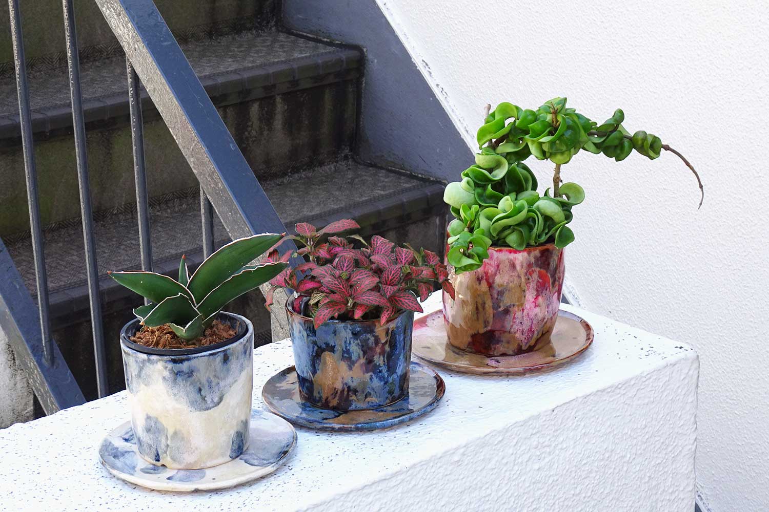 横幅のある鉢から、少し高さのある鉢を制作していただく予定なので、植物の性質やコーディネートに合わせて鉢選びするのも楽しそうです。作品はすべて一点ものとなりますので、ぜひ植物と合わせてお好みの鉢を選んでみてください。