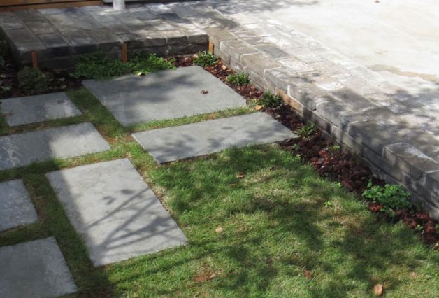 新築のお宅。道路から玄関まで約13mある長いアプローチを楽しみながら歩けるよう色々な植物を植えました。アプローチの片方はアパート、もう片方は公園なので、アパート側は目隠しフェンスを設置し、公園側は公園の緑が美しいのでオリジナルのメッシュフェンスにしてさらに緑が楽しめるように工夫。門扉はオリジナルでスチールで作りました。
