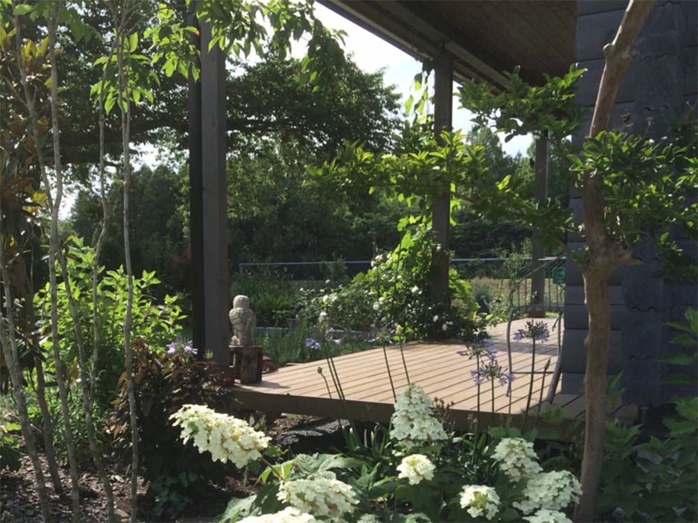 植栽の選定は落葉樹、宿根草を中心に実物・花木を多く用い、