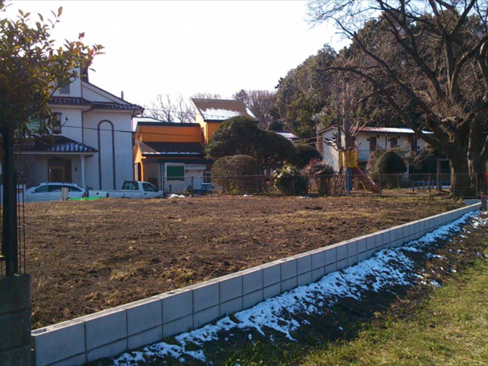 高低差と植栽によりフェンス等の構造物は最低限に抑える等