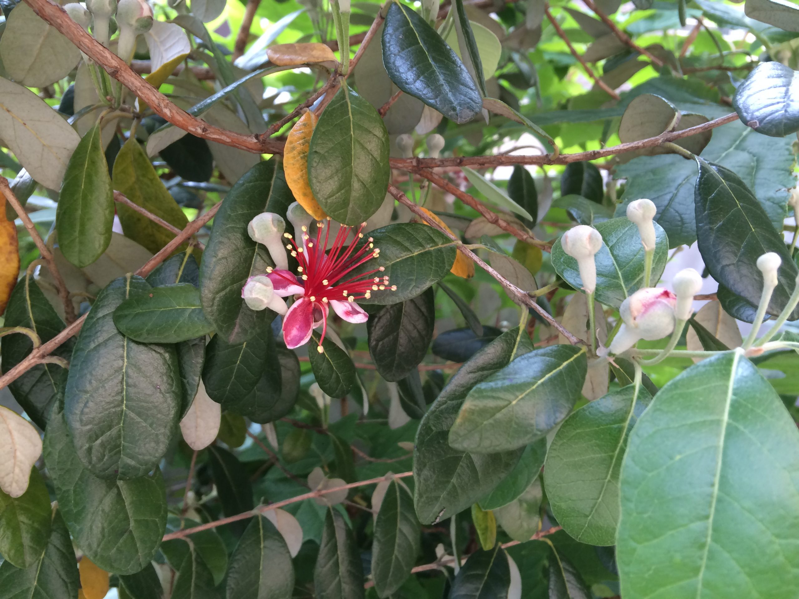 南米原産のフトモモ科の樹木。 花に実に葉に楽しみどころ満載。 見た目だけでなく、味覚でも!