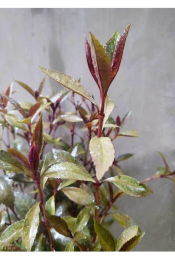 新芽がとくに黒色が強く、徐々に茶緑色になります。独特な葉色は、濃緑色の植物と対比させても映えます。