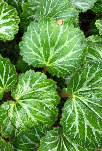 早春の林の足元、斑点のある丸みを帯びた切れ込みの深い葉が肩を寄せ合うように群生を作る姿が見に止まります。