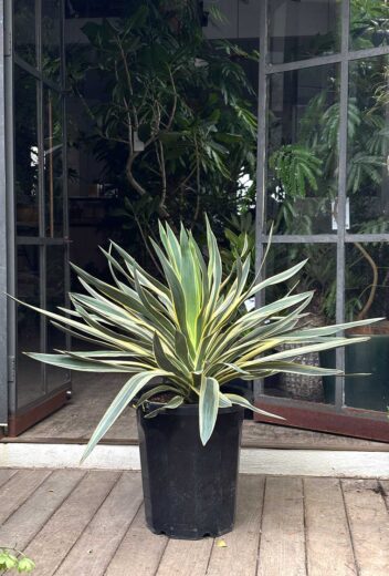 小型のフィラメント―サ バリエガタは耐寒性が強く、ほとんど立ち上がりません。葉縁にねじれた繊維を糸状に出します。