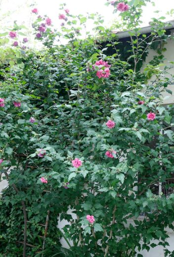 目立った病虫害はないですが、寒さが厳しいと落葉し、枝先が枯れ込みます。暑さには強く鉢でも管理できるので、軒のあるバルコニーやベランダ、隣家が迫った中庭など、限られたスペースでのグリーンとして柔らかい葉を楽しむのも良いですね。挿し木もしやすく、花後結実した種から播種によって増やすこともできます。