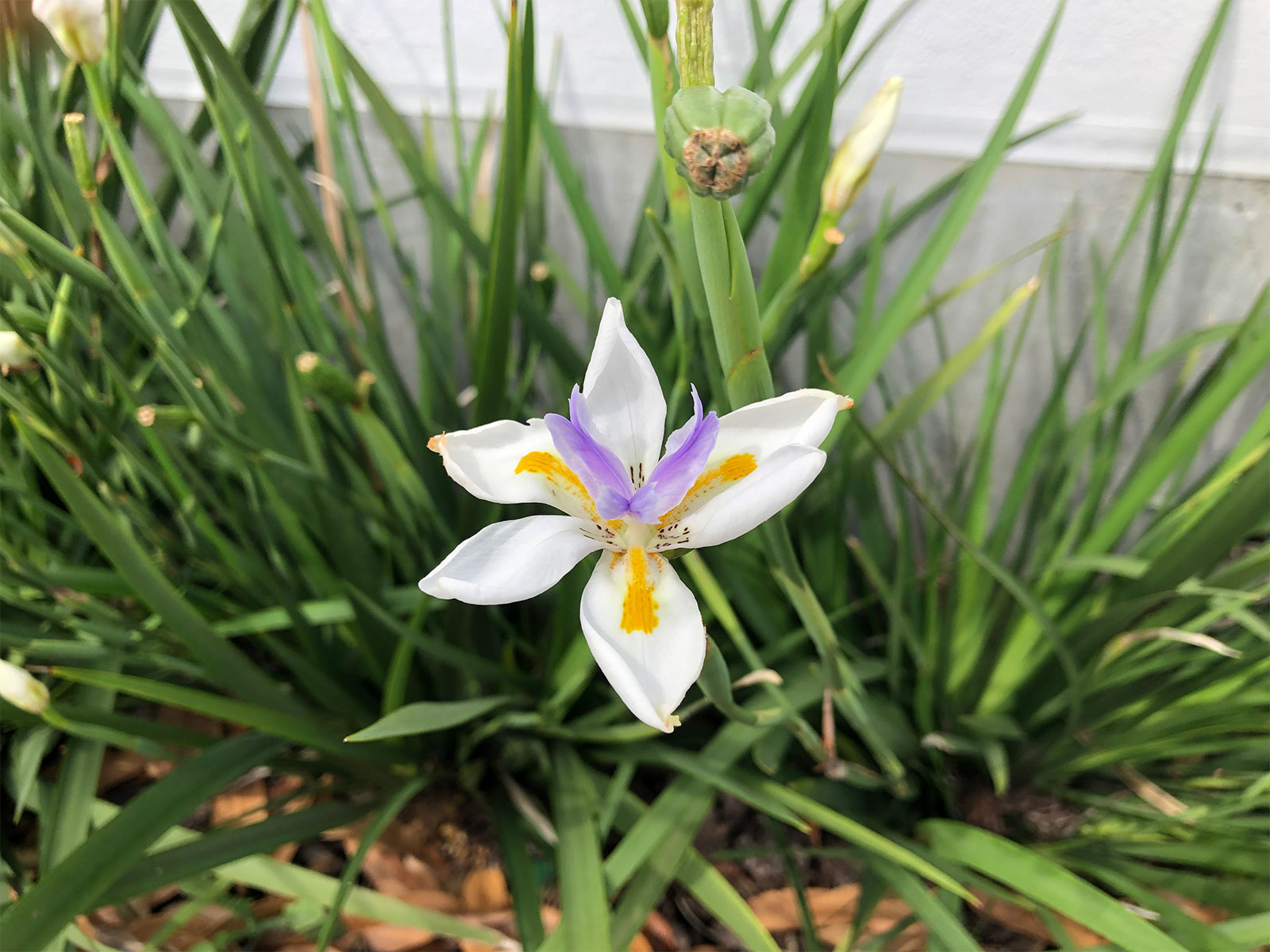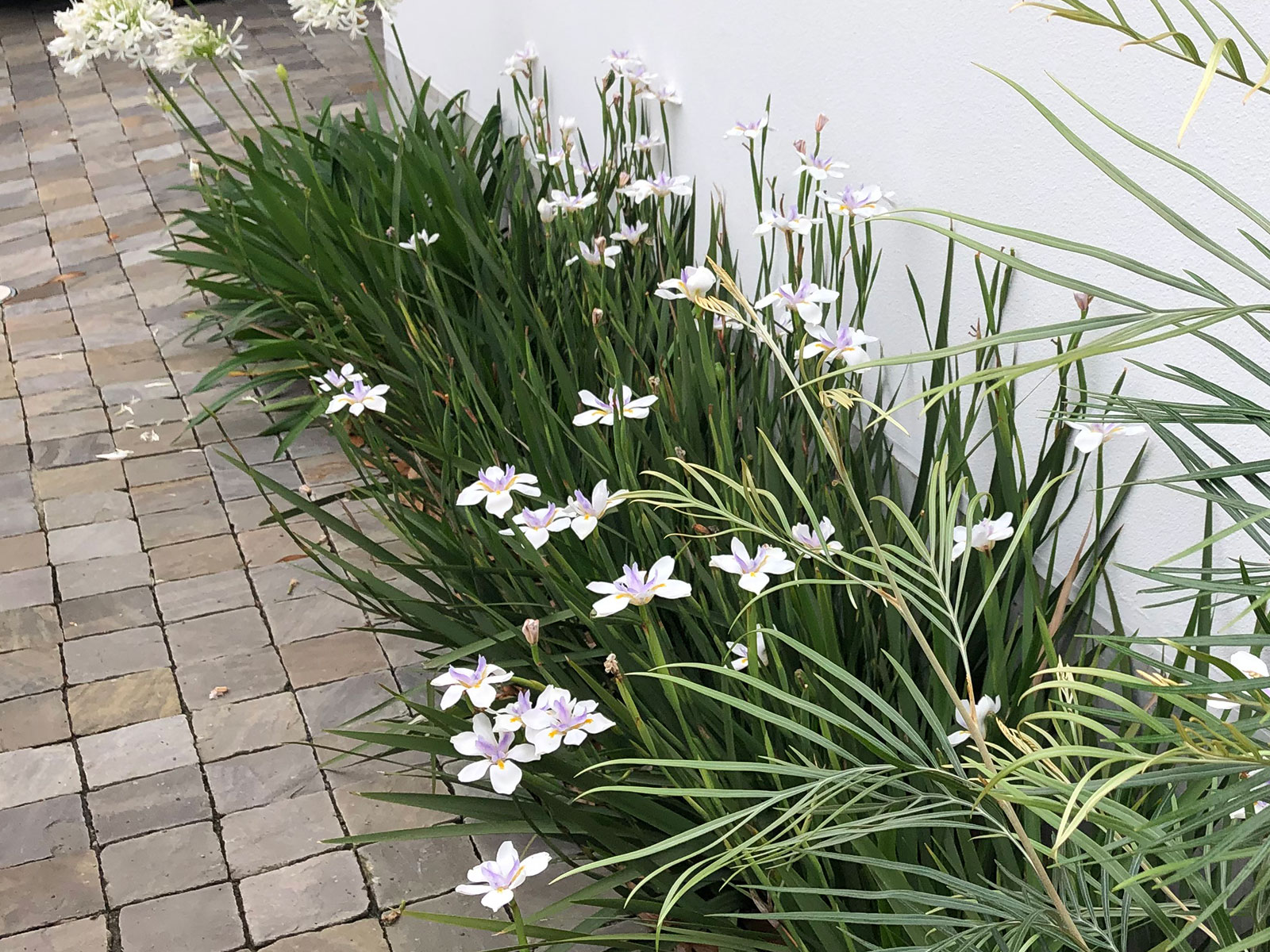 6種からなり、1種を除いてアフリカ東南部原産の常緑性のアヤメです。葉がしっかり残り、あまりはびこらず、花も楽しめる常緑多年草としては、アガパンサスと並び使いやすいです。
