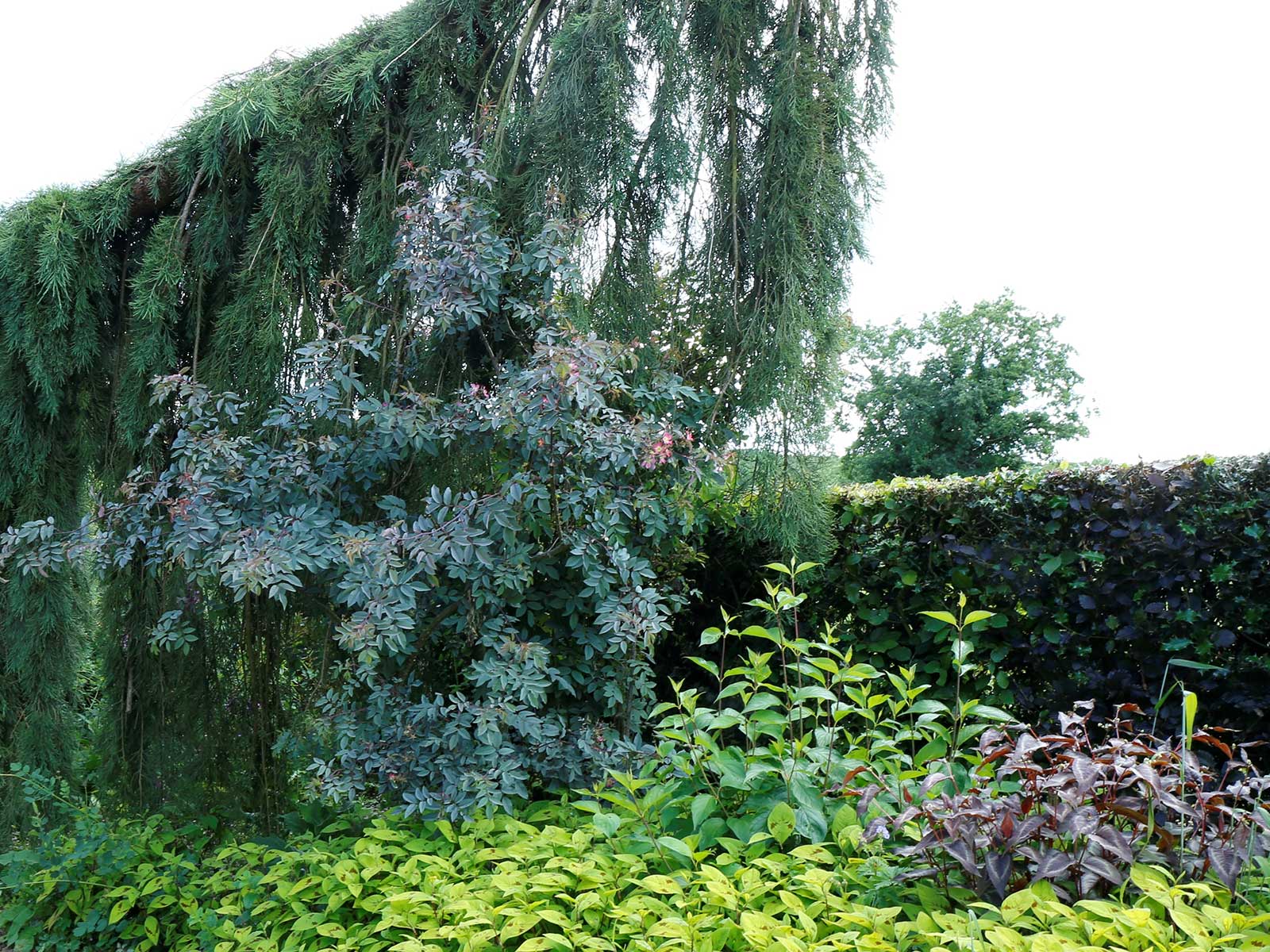 ツルタイプは、壁面や構造物を利用することで、緑のボリューム感を演出できるため、葉色やツルの太さ、扱いやすさ、耐陰性なども考慮して選ぶと良いでしょう。また、病虫害は多いですが、品種により大きく異なるので、耐病性が強く、性質が丈夫なものを選ぶようにし、多少被害は出るものと寛容に構えたいところです。