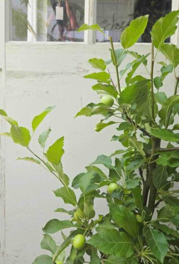食用(加工)もできるゴージャス(Malus x atorosanguinea 'Gorgeous')のような1本でも実をつけるものと、観賞用のイヌリンゴ(Malus prunifolia)や赤花種のレモイネ(malus × purpurea 'Lemoinei')のような受粉樹が必要なものとありますが、どれも基本的には異品種を近くに植えた方が良いでしょう。