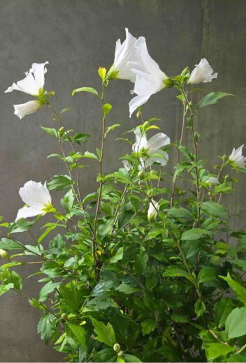 真夏に美しい大きな一日花を次々につける丈夫な落葉低木です。日当たりさえ良ければ花付きも良く、生育期に生長した枝先に花芽をつけるので、花を楽しみたいときは、5月以降の剪定を控えます。