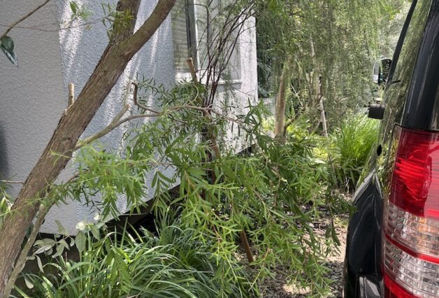 既存の壁を一部壊し、オープンな外構にする事で、駐車スペースとアプローチを分け、新たな植栽を加える事で、玄関にも程よい目隠しができる様に計画しました。