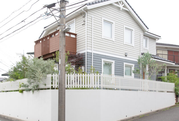 リビングに面して両開きの掃き出し窓がついていますが、サッシ下からGLまで70cmの高低差があり、導線の解消のため、ウッドデッキを設置し、奥行きよりも横幅のある形状を活かして、2階のバルコニーの幅に合わせてゆったりとしたサイズで設計しました。