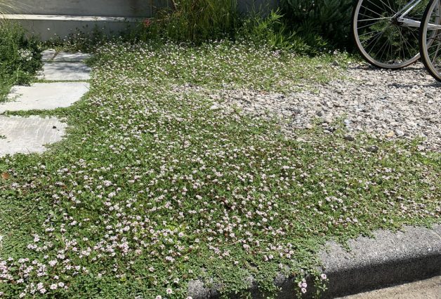 純粋に庭と呼べるスペースは4坪ほどですが、駐車場に利用するスペースの舗装をラフな砂利舗装とすることで、植物の変化が入り込む余地をつくり、庭の雰囲気と溶け込むようにしたり、