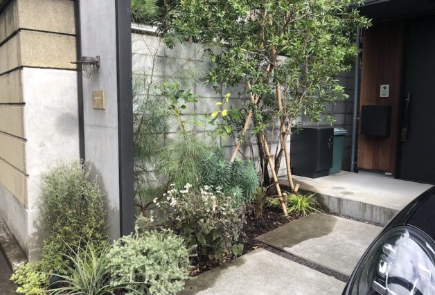 しっかりした構えの邸宅が並ぶ住宅街において、シンプルではあるが存在感のある、お客さまらしいお家の「顔」が出来たのではないかなと思います。