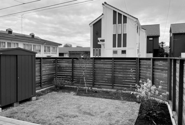 閑静な住宅街に建つ戸建住宅の外構改修工事を行いました。ウッドフェンス、ウッドデッキ、物置などの基本的な構成は建築工事とあわせて施工されており、その後は施主様ご自身の手で芝の施工や植栽の追加が段階的に進められていました。そうした中で、空間全体のバランスや動線の確保、季節感のある植栽計画などに課題を感じられ、弊社にご相談をいただきました。
