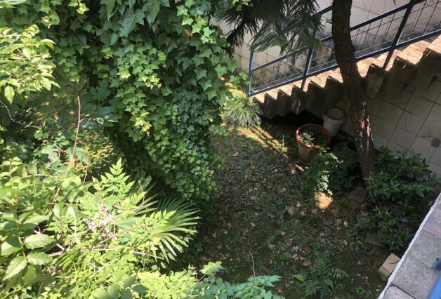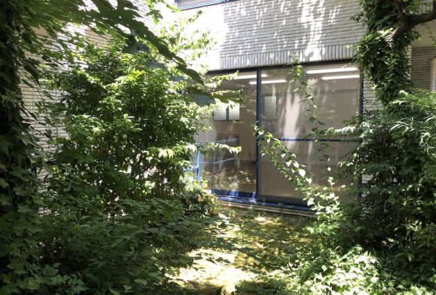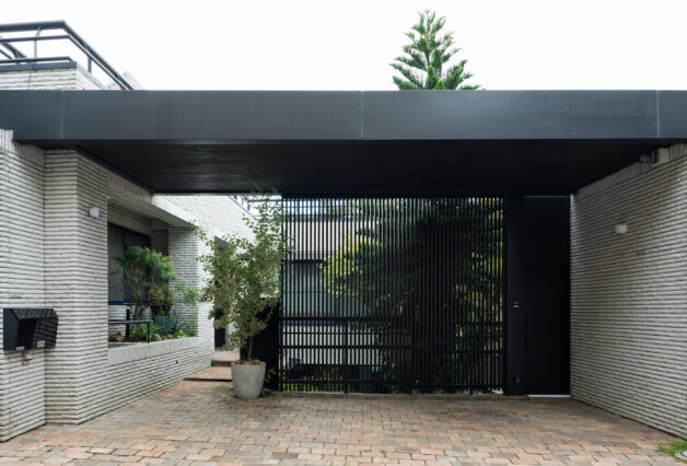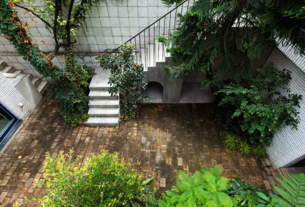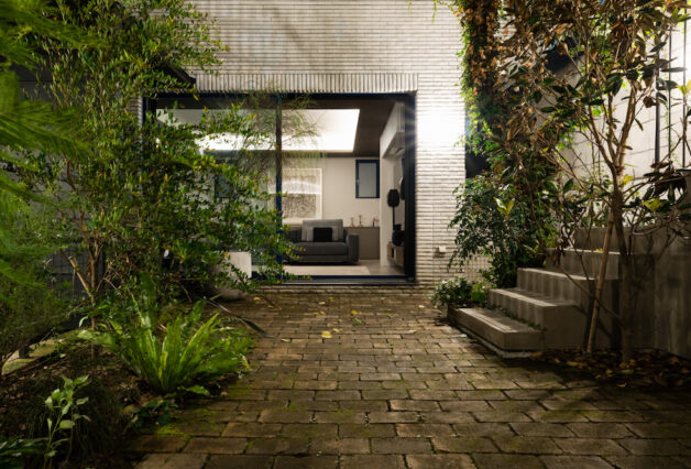 既存のパティオは鬱蒼としていましたが、年月を経てその地に根付いたナンヨウスギやアンズ、苔むしたレンガ舗装など、元々とても雰囲気のある空間でした。そこで、空間構成として手を加えるのは最小限と考え、新しい動線計画に合わせ、既存レンガを再配置する事で植栽帯と舗装部分を明確に整理する事のみに留めました。