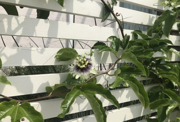 植栽は、奥様の趣味のドライフラワーアレンジメントや、お子さんたちと収穫が楽しめる果樹で構成し、フェンスの端材を利用した菜園枠を設置しました。全体を覆うフェンスにも、香りのいいトウテイカカズラやツキヌキニンドウのほか、ブドウやブラックベリー、パッションフルーツなどを植栽し、収穫を楽しんでいただいています。
