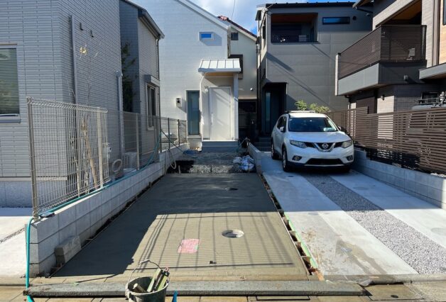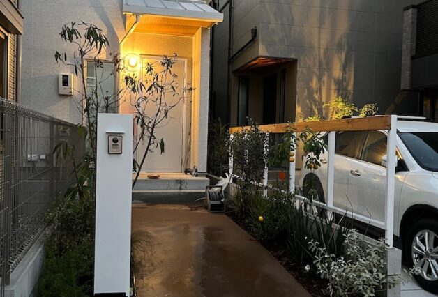 道路から玄関ポーチにかけての高低差も課題でしたが、階段の代わりに距離のあるスロープを採用することで、フラットに使える空間が広くなり、アプローチとしてだけではなく、駐輪スペース、お庭いじりをするスペースとして、ご活用いただいています。
