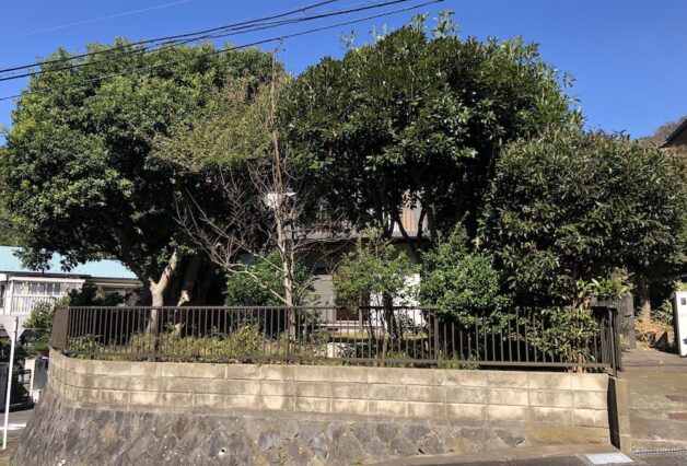 葉山の二子山の麓、はるかに望む海と緑豊かな山に囲まれた絶好のロケーションに立つ住宅の外構計画。
