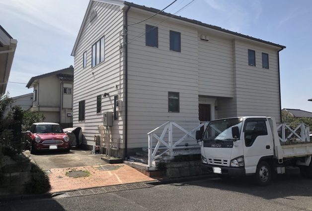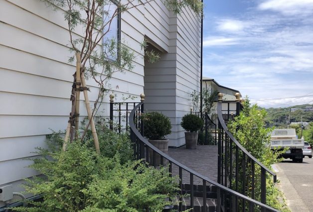 海に徒歩で行ける湘南の高台エリア。中古の戸建てをご購入され、内装、外構ともに少しづつ手を入れて住まわれています。2017年にお声がけいただき、一期工事は中庭の鉄骨階段とテラス、二期目はアプローチ部分から駐車場、中庭部分の改修工事を行いました。
