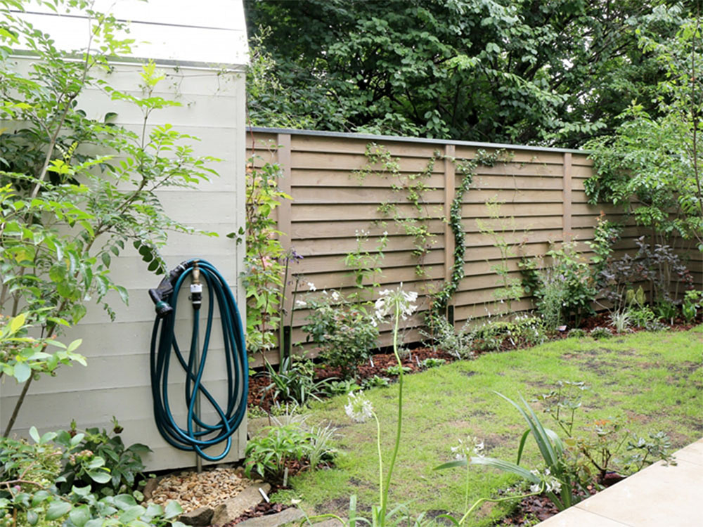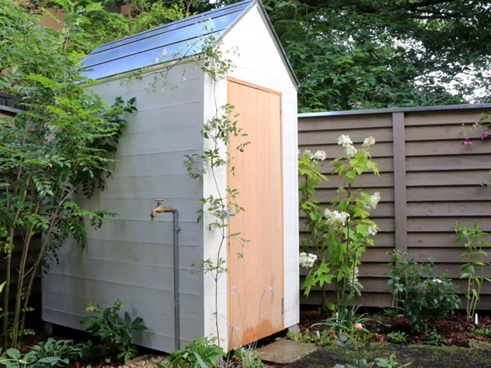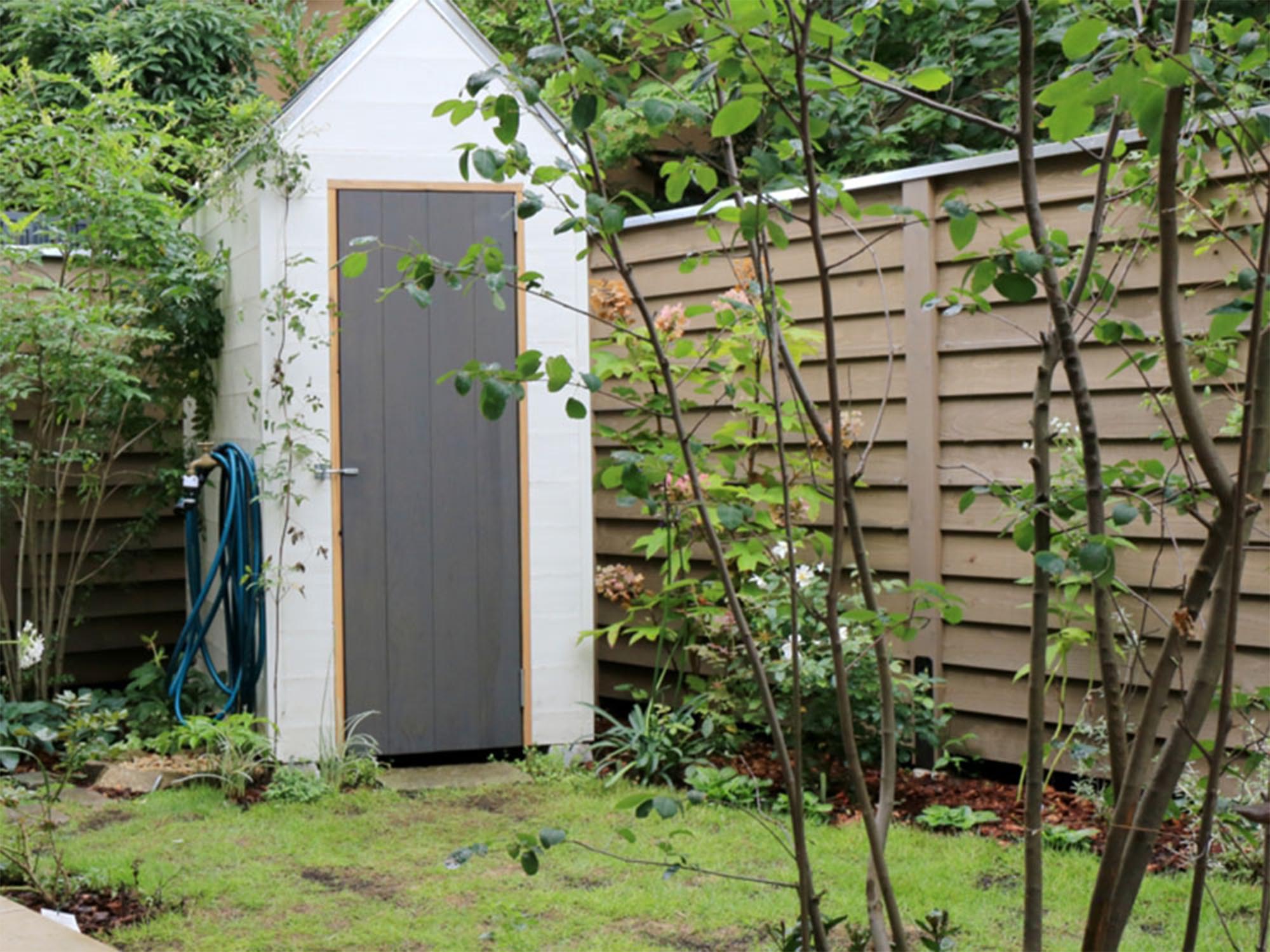 Works 007 杉並区の家 陶芸のアトリエに面した中庭で沢山の花やバラを楽しみたいというオーナーのご依頼。隣地の桜を借景に、バラやクレマチスが這わせられるウッドフェンスや物置を設置。 Date: 2014 Area: 53m2 Type: 新築戸建 タグ エントランス フェンス 収納スペース 植栽 駐車場 1 / 2 2 / 2