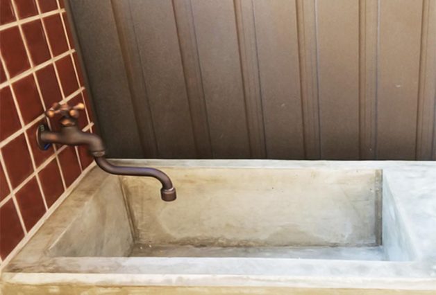 2辺の接合部にあたる部分には腰壁を設けることとそれを利用し水場や物を置いたり作業をしたり出来る機能を設けることによって圧迫感を与えることなくスペースに仕切りを作り、多目的に使えるスペースも確保しました。