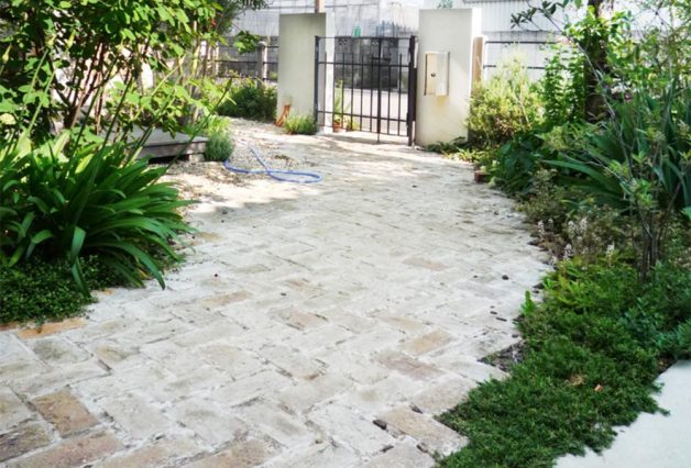 日当たりのよい南東の角地に建てられた戸建て住宅の外構全体を行いました。